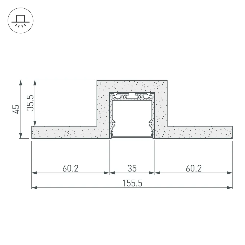Гипсокартонный модуль серии LINE со встроенным алюминиевым профилем SL-LINE-3535. Внешний вид - прямая линия света шириной 32 мм в плоскости. Размеры модуля: ширина -155 мм, высота - 44.5 мм, длина - 2000 мм. Ширина площадки для светодиодной ленты: 31 мм. Толщина гипсокартона: 9,5 мм. Матовый экран в комплекте. Поставляется не зашпаклеванным. Цена за 1 м.