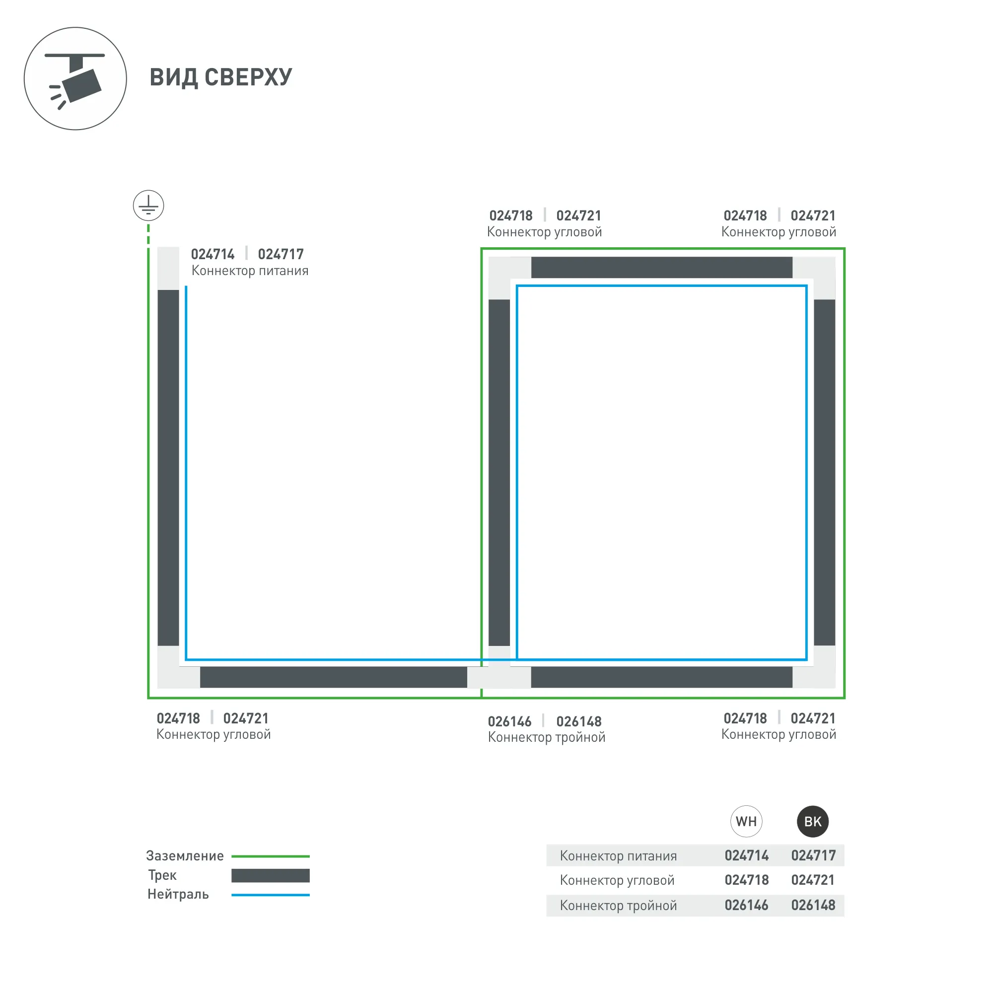 Угловой коннектор 90 градусов, питание по внешней стороне (определение необходимого коннектора происходит относительно контакта заземления системы). Цвет белый. 99х99х33 мм с контактами, 66х66х33 мм без контактов. При использовании с треками и аксессуарами другой серии возможно отличие по цвету.