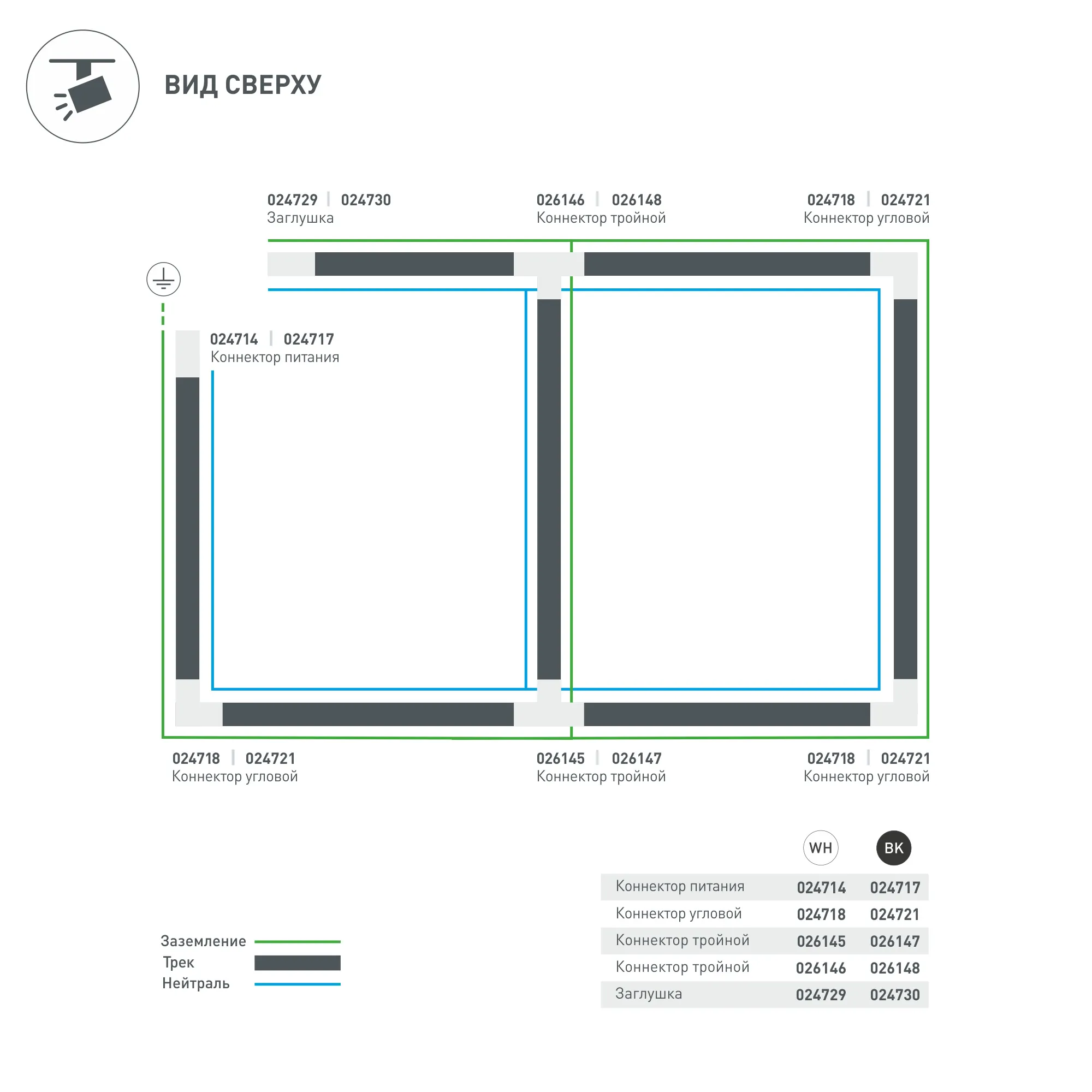 Направление соединений снаружи/слева (определение необходимого коннектора происходит относительно контакта заземления системы). 166х99х33 мм с контактами, 99х66х33 мм без контактов. При использовании с треками и аксессуарами другой серии возможно отличие по цвету.