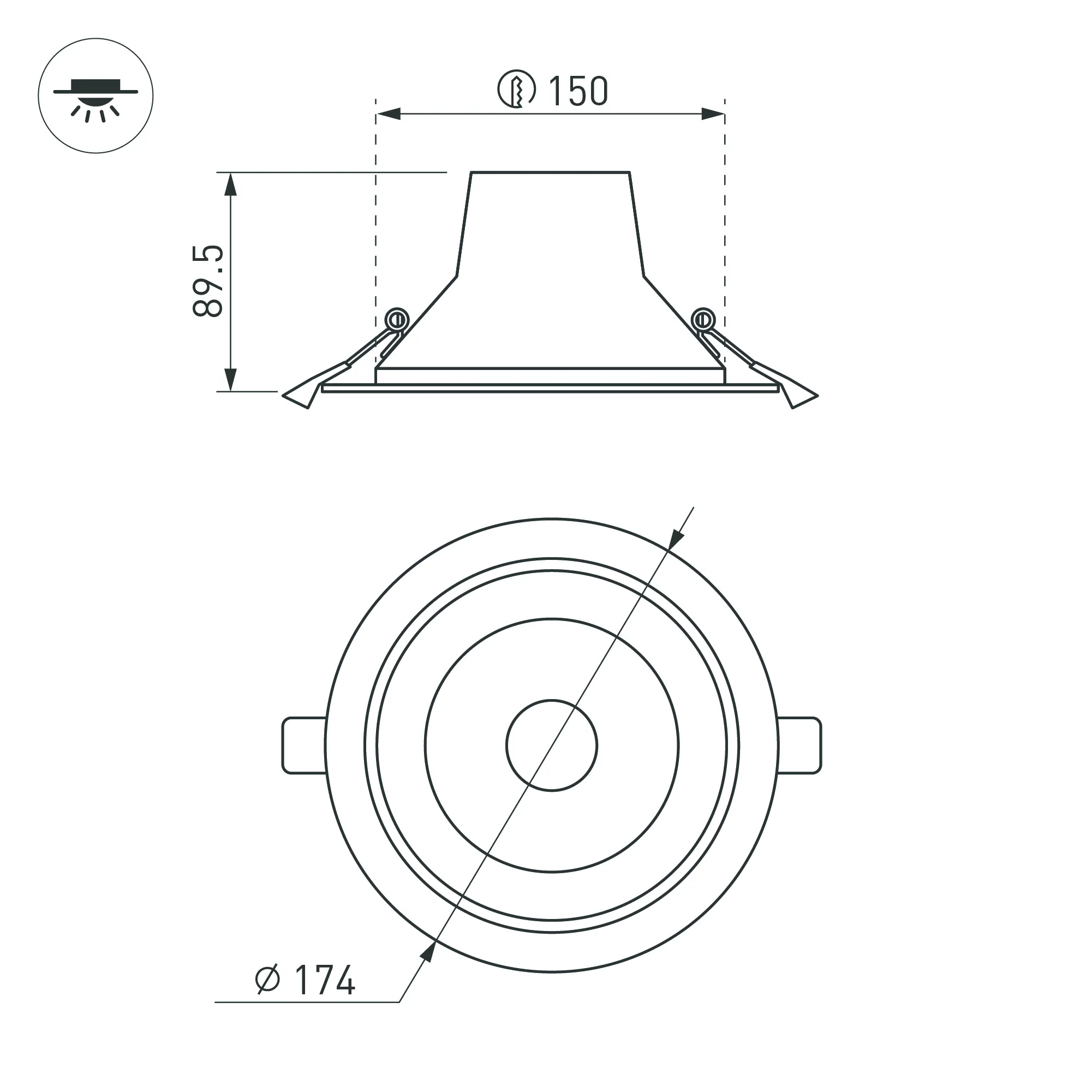Встраиваемый светильник "Даунлайт" 20Вт. Цвет свечения ДНЕВНОЙ 4000К. Световой поток 1800лм, угол 50°, CRI>80. Белый корпус. Питание AC220-240V. Габариты: Ø174х89,5мм, врезное отверстие Ø145-155мм. Драйвер в комплекте (20,5-34,5V, 700mA).