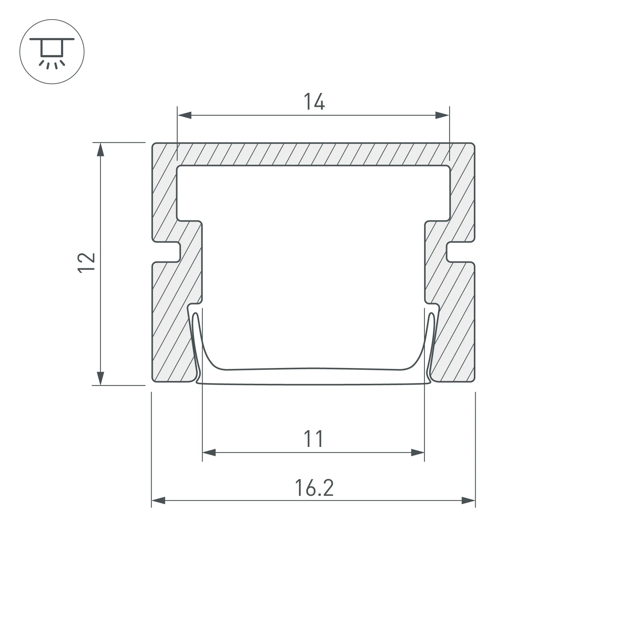 Алюминиевый анодированный профиль для светодиодных лент и линеек. Габаритные размеры (L×W×H): 2000x16,2x12 мм. Ширина площадки для ленты 14 мм. Экраны, заглушки и другие аксессуары приобретаются отдельно. Цена за 1 метр.
