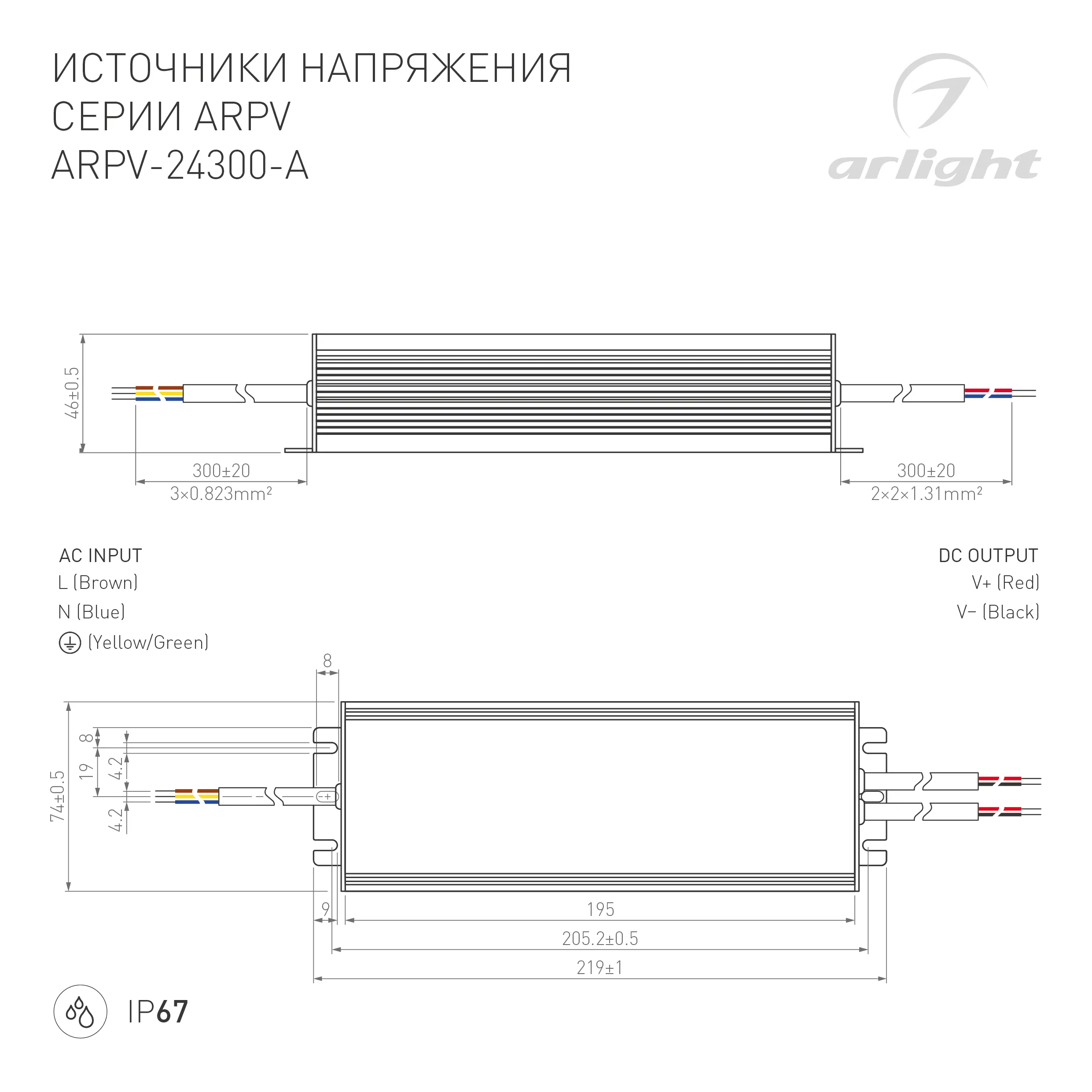 В магазине Arled Market Вы можете купить "Блок питания ARPV-24300-A (24V, 12.5A, 300W) (Arlight, IP67 Металл, 3 года)"