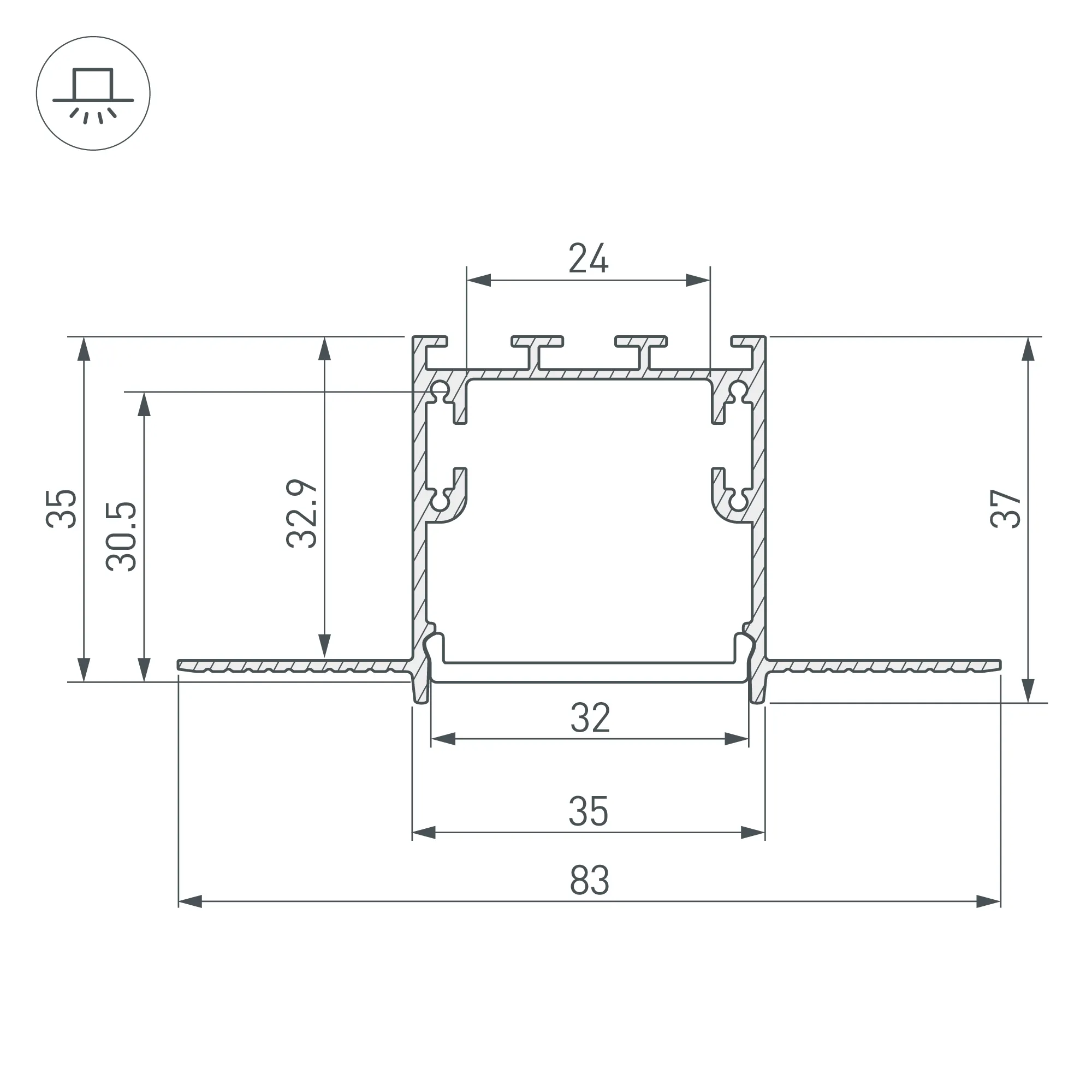 Профиль с экраном SL-LINIA32-FANTOM-2500 ANOD+FROST (Arlight, Алюминий)