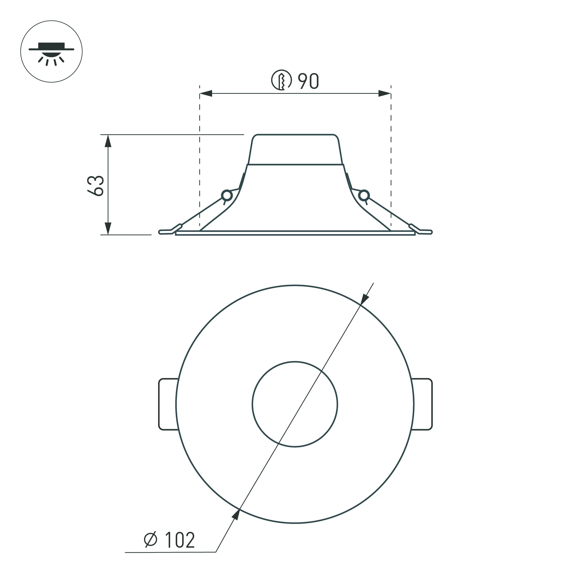 Светильник MS-BLIZZARD-BUILT-R102-8W Warm3000 (WH, 100 deg, 230V) (Arlight, IP20 Металл, 3 года)