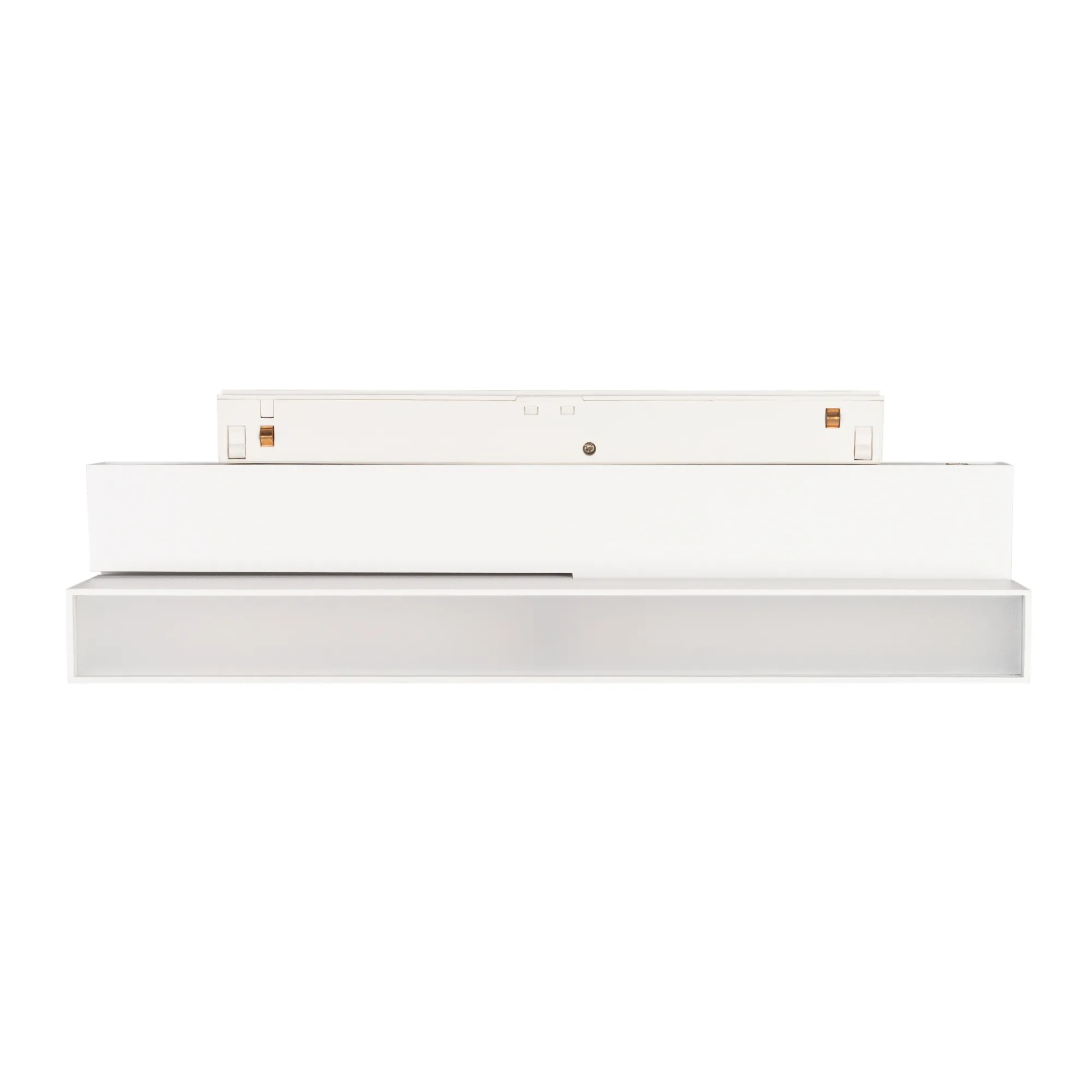 Светильник для магнитных треков MAG-ORIENT шириной 26 мм. Мощность 12 Вт, св. поток 760 лм, 64 лм/Вт, дневной 4000 K, CRI>90, угол 80°, напряжение питания 48 В. Белый прямоугольный корпус из металл, экран поликарбонат, степень защиты IP20. Размер: длина 232 мм, ширина 23 мм, высота 99 мм. Монтаж на трек MAG-ORIENT. Пульсация <1%.