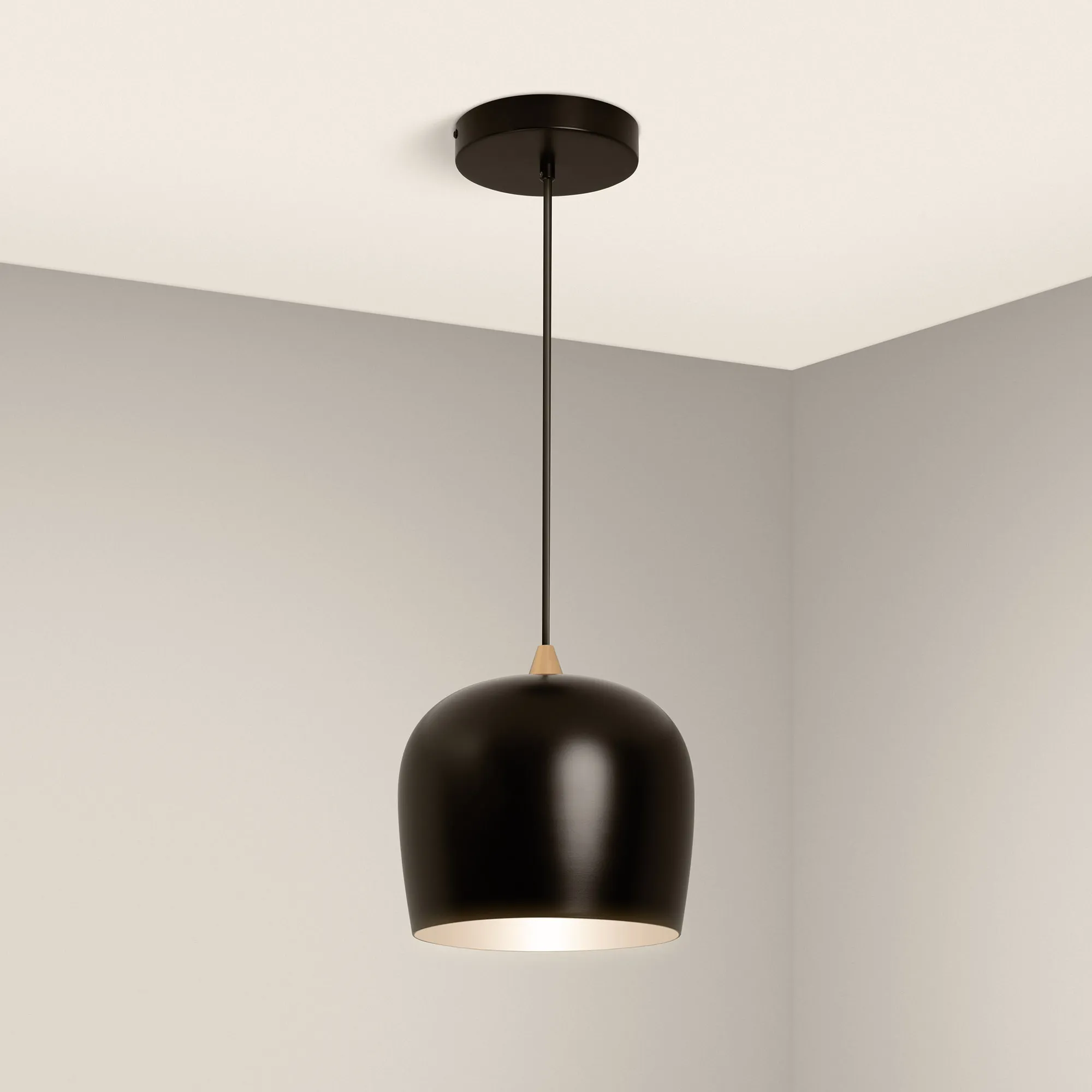 Подвесной светильник. Мощность 15 Вт, св. поток 730 лм, 50 лм/Вт, дневной 4000 K, CRI>90, угол 65°, напряжение питания 230 В. Черный круглый корпус из алюминия, степень защиты IP20. Размер: диаметр 250 мм, высота 250 мм, размер чаши: диаметр 160 мм, высота 35 мм. Монтаж подвесной, длина подвеса 1500мм. Драйвер 24-40 В, 350 мА, пульсация <5%.