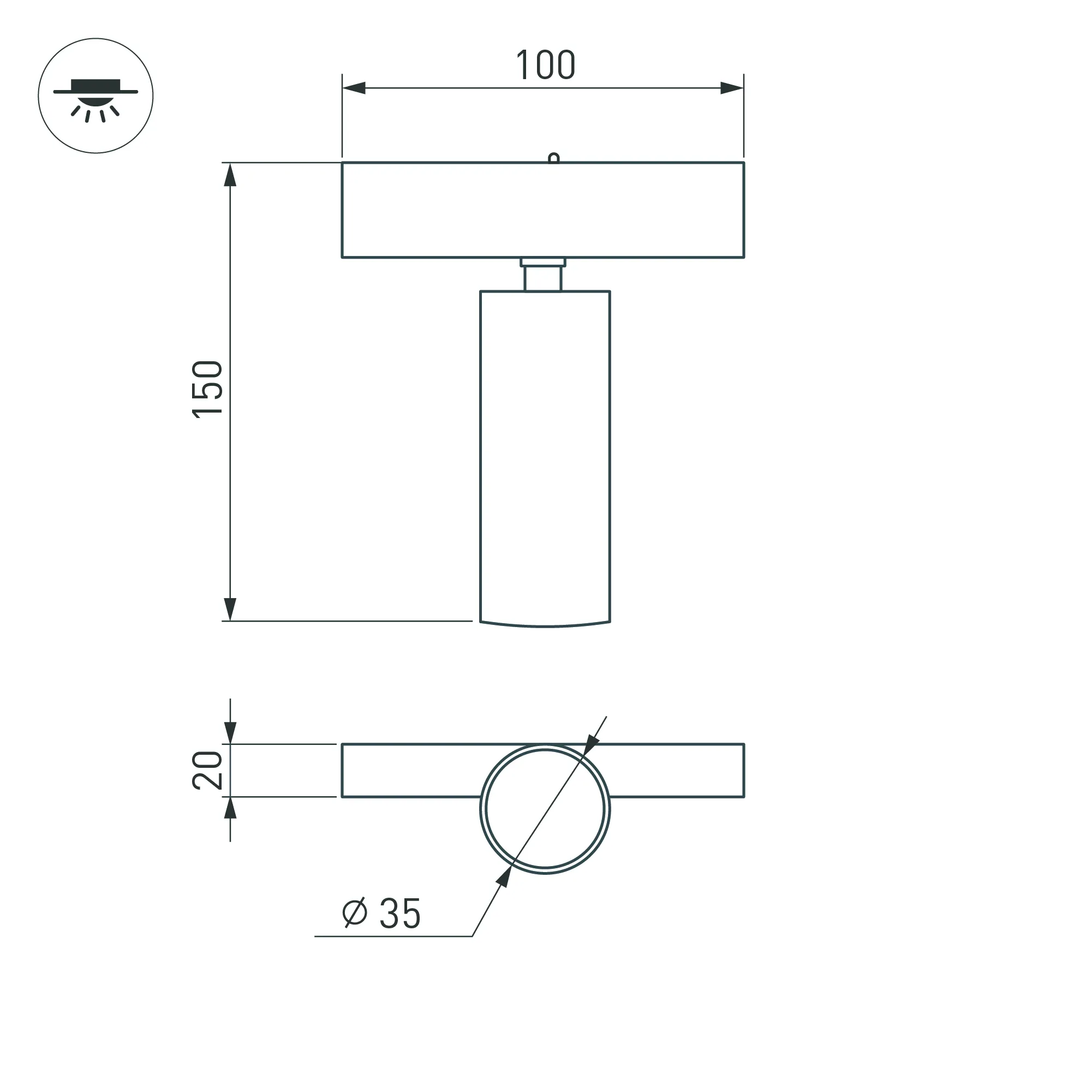 Светильник поворотный для магнитных треков шириной 25 мм, 12 Вт. Цвет свечения ТЕПЛЫЙ 3000K, световой поток 840лм, угол 30°, CRI>90. Корпус прямоугольный, металл, цвет черный, IP20. Размеры LxWxH 100x20x150 мм. Входное напряжение DC24V, мощность 12 Вт. Драйвер AC230V/DC24V поставляется отдельно. Диаметр светоизлучающего модуля 35 мм.
