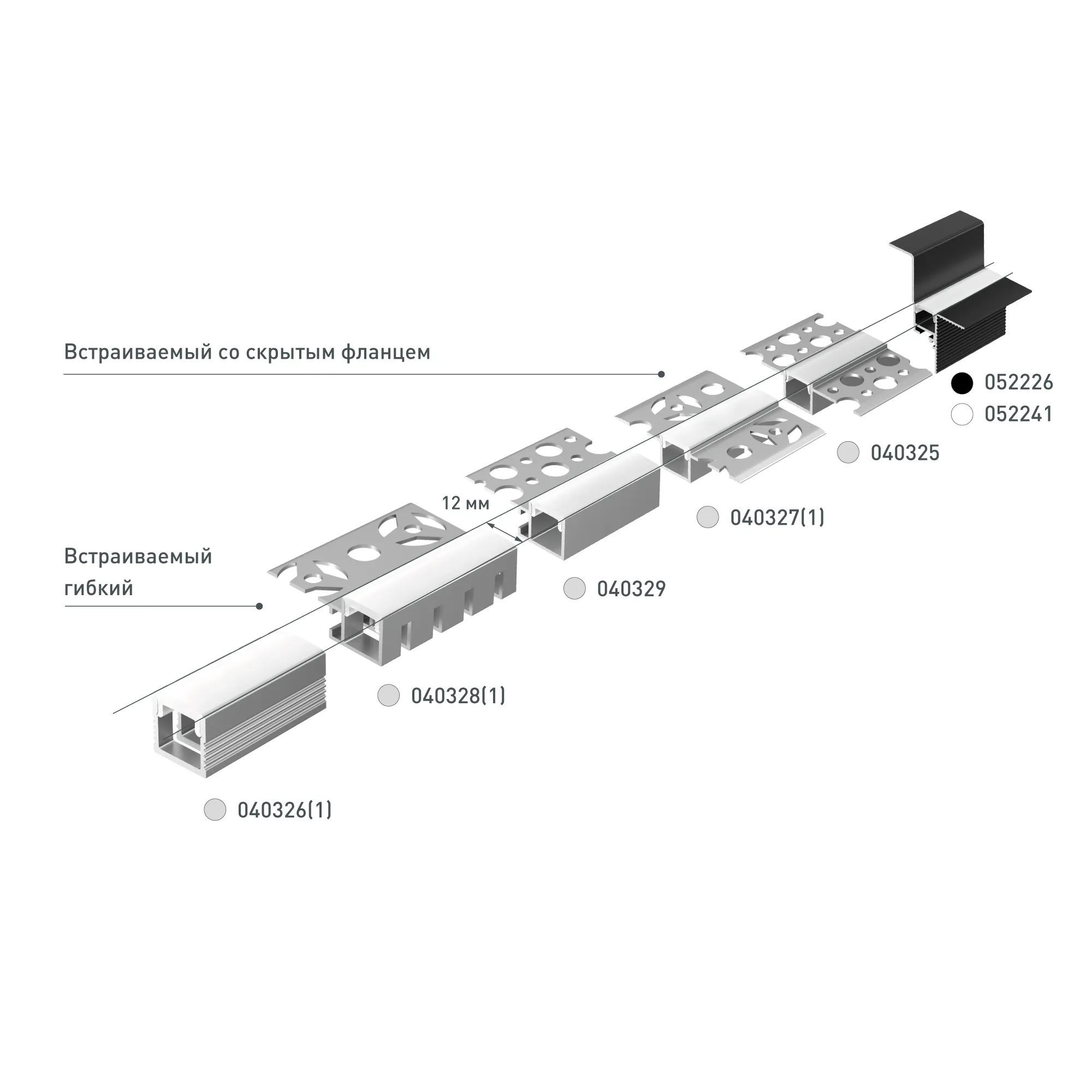 Алюминиевый встраиваемый гибкий профиль для светодиодных лент и линеек. Изгиб вверх/вниз. Габаритные размеры (L×W×H): 2000х52,8х11,8 мм. Ширина площадки для ленты 10,6 мм. Экраны, заглушки и другие аксессуары приобретаются отдельно. Цена за 1 метр.