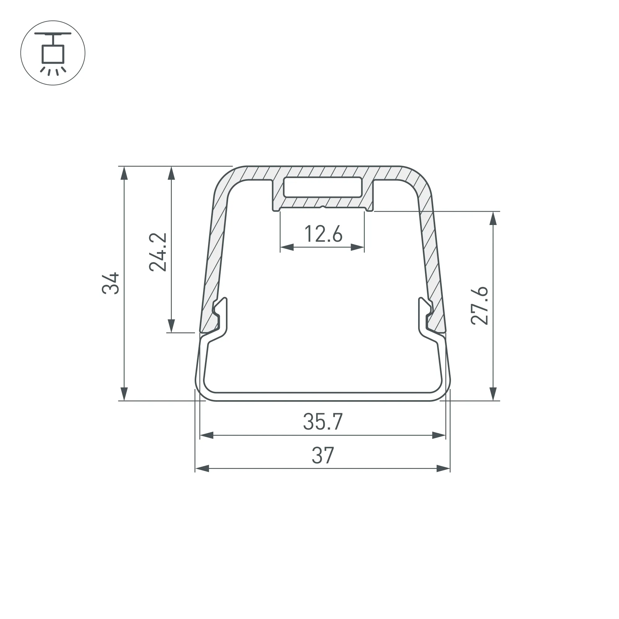 Комплект профиля с экраном и заглушками. Подвесной профиль трапециевидной формы с объемным матовыми экраном из поликарбоната идеально подходит для основного освещения и создания дизайнерских светильников. Цвет - серо-оливковый. Габаритные размеры (L×W×H): 2000x37x34 мм. Ширина площадки для ленты 12,6 мм. Аксессуары приобретаются дополнительно.