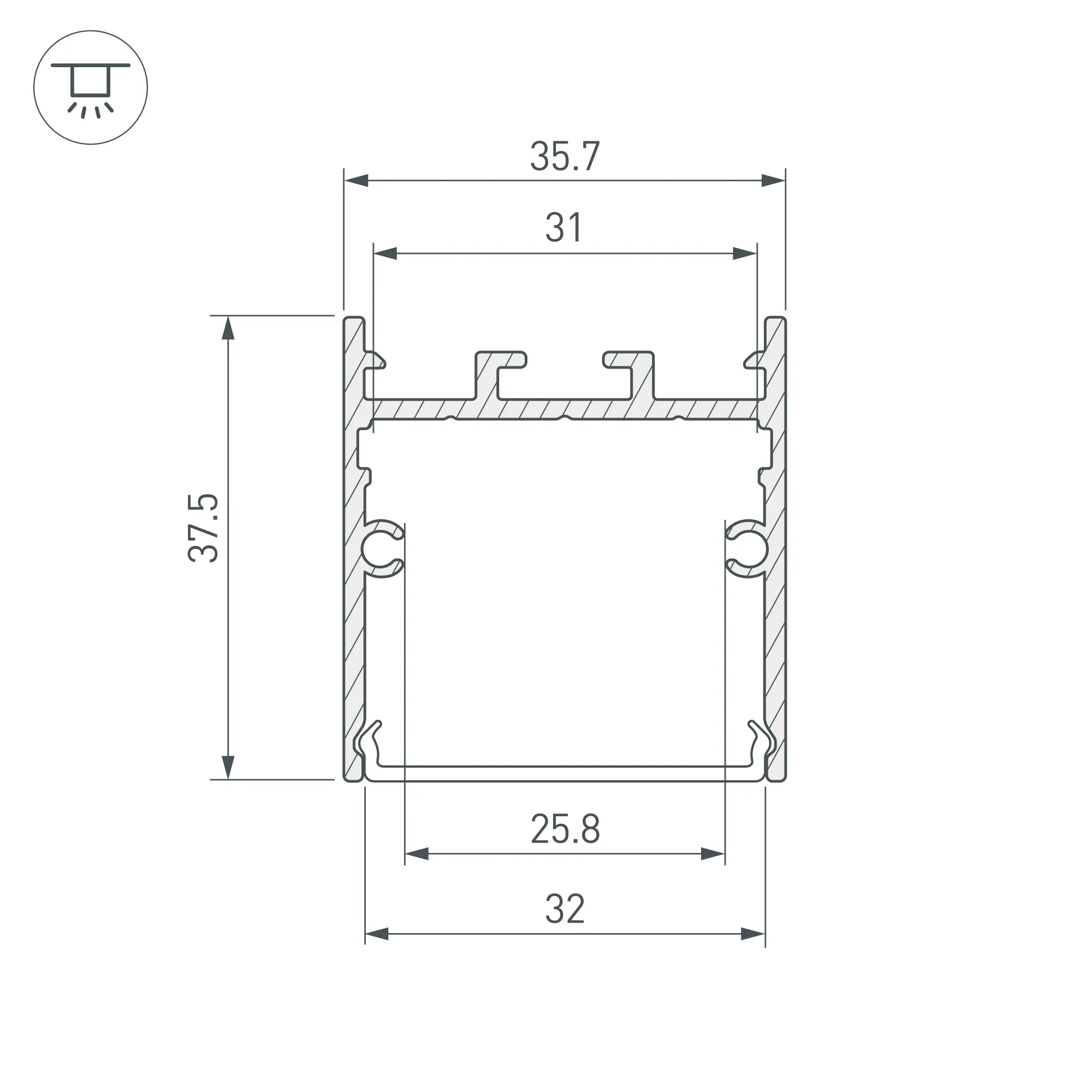 Алюминиевый профиль для светодиодных лент и линеек. Цвет - белый (порошковая окраска RAL9003), поверхность - зернистая. Габаритные размеры (L×W×H): 2000x36x38 мм. Ширина площадки для ленты 31 мм. Экраны, заглушки и другие аксессуары приобретаются отдельно. Цена за 1 метр.