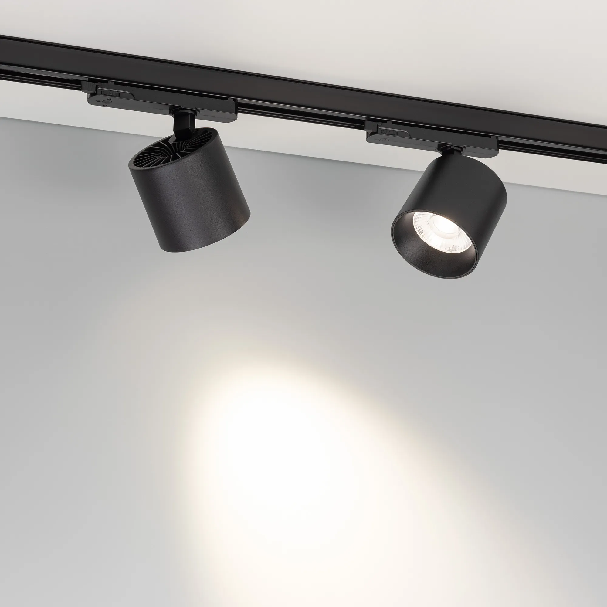 Светильник для трехфазных треков, 36 Вт. Цвет свечения ДНЕВНОЙ 4000K, световой поток 3200 лм, угол 50°, CRI>90. Корпус круглый, металл, цвет черный, IP20. Размеры Ø100x93 мм. Входное напряжение AC220-240V, мощность 36 Вт. Драйвер встроенный (24-42V, 850 mA).Пульсация <1%.