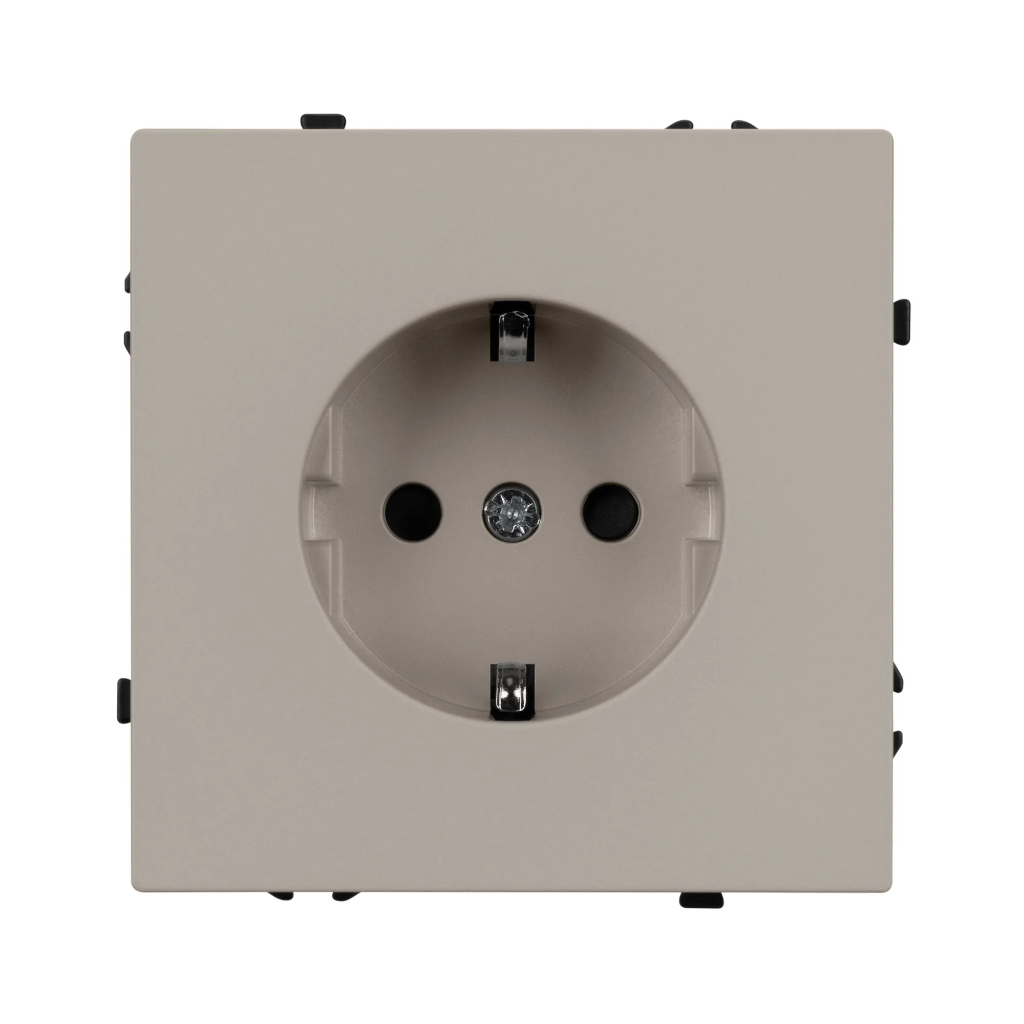 Механизм розетки с заземлением на 1 пост. Цвет - кашемир, с Soft-Touch поверхностью. Без фронтальной рамки. Уровень пылевлагозащиты IP20. Розетка устанавливается в стандартный подрозетник круглого сечения диаметром 60мм.